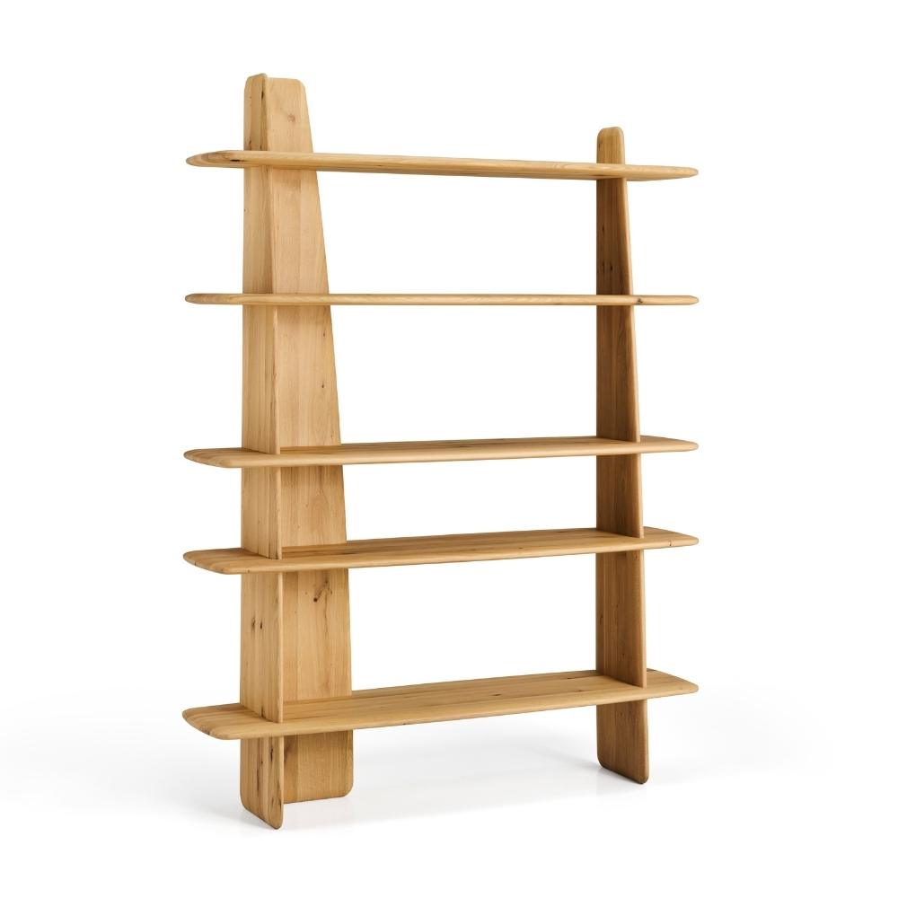 5 étagères - Pieds, montants et étagères : chêne massif - Finition unique : Chêne Organic.