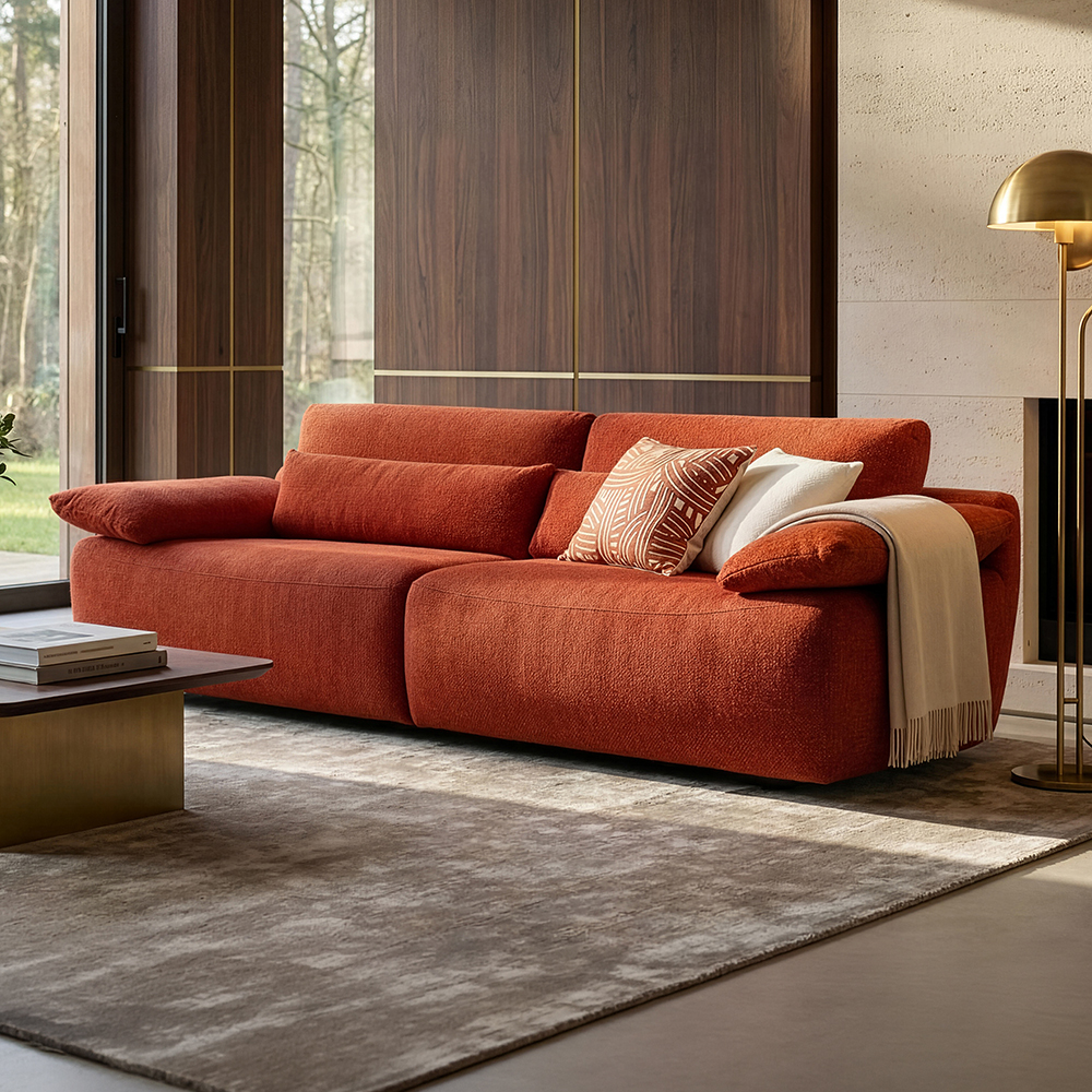 Le canapé SOLA réveille votre salon avec son coloris Chili vibrant et ses courbes audacieuses. Son design organique affirme sa présence tout en conservant une silhouette aérienne grâce à ses coussins d'accoudoirs effilés. Pensé pour s’adapter à votre intérieur, SOLA se module par pas de 10 cm et se décline dans de nombreuses configurations. Côté confort, cinq technologies d’assise vous permettent de choisir celle qui vous convient le mieux. Ce modèle se personnalise dans les moindres détails : large choix de tissus et de cuirs, version bicolore, surpiqûres contrastées parmi 14 teintes… Chaque combinaison révèle une personnalité unique. Et pour prolonger l’expérience, profitez des options relax : têtière relevable, repose-pieds électrique ou batterie intégrée dans l’accoudoir, sans câble apparent.