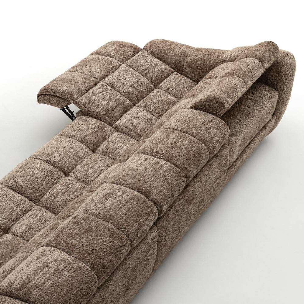 Structure : bois de sapin massif / multicouche, panneaux agglomérés / multicouche - Suspension : sangles élastiques entrecroisées - Rembourrage assise : polyuréthane expansé 30 kg/m³ recouvert en polyuréthane 24 kg/m³ recouvert en résiné couplé - Rembourrage dossier : polyuréthane expansé 24 kg/m³ recouvert en résiné couplé - Rembourrage appui-tête : polyuréthane expansé 24 kg/m³ recouvert en résiné couplé - Rembourrage accoudoir : polyuréthane expansé 25 kg/m³ recouvert en résiné couplé - Pieds finition noir - Mécanisme standard d’appui-tête, réglable à micro-pas - Grand choix de revêtements - Existe aussi en version angle et relaxation.