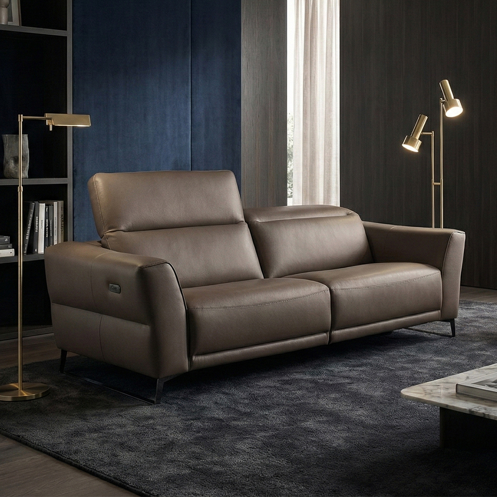 Transformez votre salon en un véritable espace de confort et de style. Conçu en Italie, le canapé OMAHA séduit par ses lignes élégantes et ses matériaux de qualité : bois soigneusement sélectionné, suspensions durables et mousses spécialement étudiées pour un confort optimal. L’assise vous accueille d’abord avec souplesse, puis soutient votre corps avec fermeté et précision. Les accoudoirs évasés assurent un appui naturel, tandis que le dossier haut, avec son effet cale-reins, épouse vos courbes et invite à la détente. Que vous soyez en pleine lecture ou en train de vous détendre, les têtières ajustables s'adaptent à vos besoins pour un soutien sur-mesure. Esthétique sous tous les angles, le canapé OMAHA se place aussi bien au centre de la pièce qu'adossé à un mur. En version relaxation, le long repose-pieds s’étire doucement, prolongeant la sensation de bien-être. En tissu ou en cuir, uni, bicolore ou en bi-matière, il se décline selon vos envies. Un canapé avec un look intemporel, pensé pour sublimer votre quotidien.