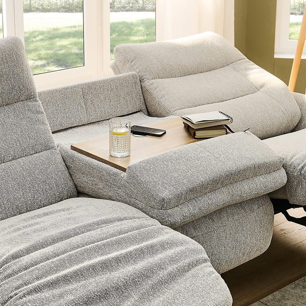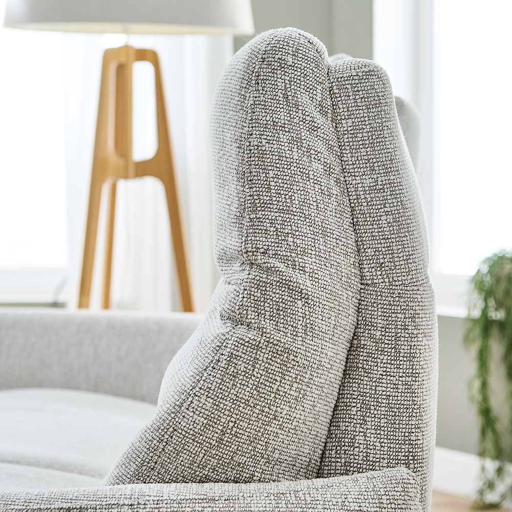 Ses trois assises bénéficient de deux mousses complémentaires de haute qualité, assurant un accueil moelleux et un maintien durable. Les dossiers hauts, associés à des appui-têtes inclinables, permettent à chacun de trouver la position idéale, que ce soit pour lire, se relaxer ou regarder un film. Le dossier central peut se transformer en une tablette pratique pour poser votre téléphone ou vos accessoires.