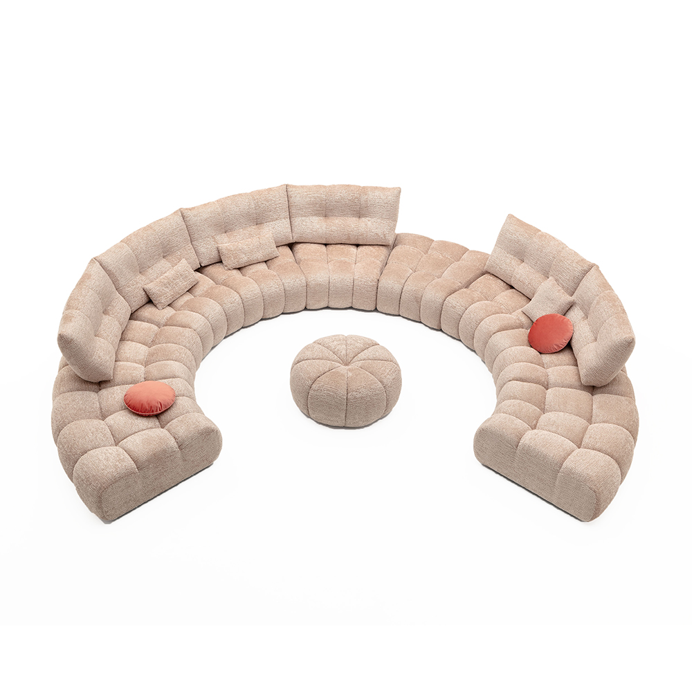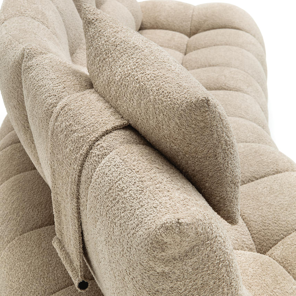 Son capitonnage façon nuage offre un accueil moelleux et enveloppant, idéal pour les instants de calme comme pour les moments partagés. Véritable cocon de bien-être, il se distingue par ses dossiers mobiles « avance-recule », un système intuitif qui ajuste la profondeur d'assise pour passer d'une posture tonique à une détente complète. Ses accoudoirs généreux prolongent encore le confort, pouvant également faire office de support de repos. Modulaire par nature, T-MOON se décline dans de multiples configurations pour s'adapter à tous les espaces de vie. Ses lignes arrondies et sa palette variée de tissus et de coloris insufflent une douce harmonie à votre intérieur.