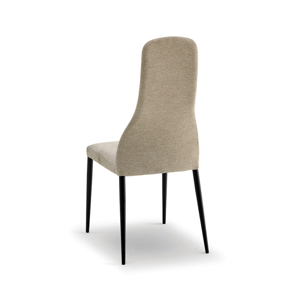 Hauteur assise : 48 cm - Pieds fuseaux en métal finition époxy - Existe en unie ou bi-matière - Large gamme de tissus et cuirs disponibles.