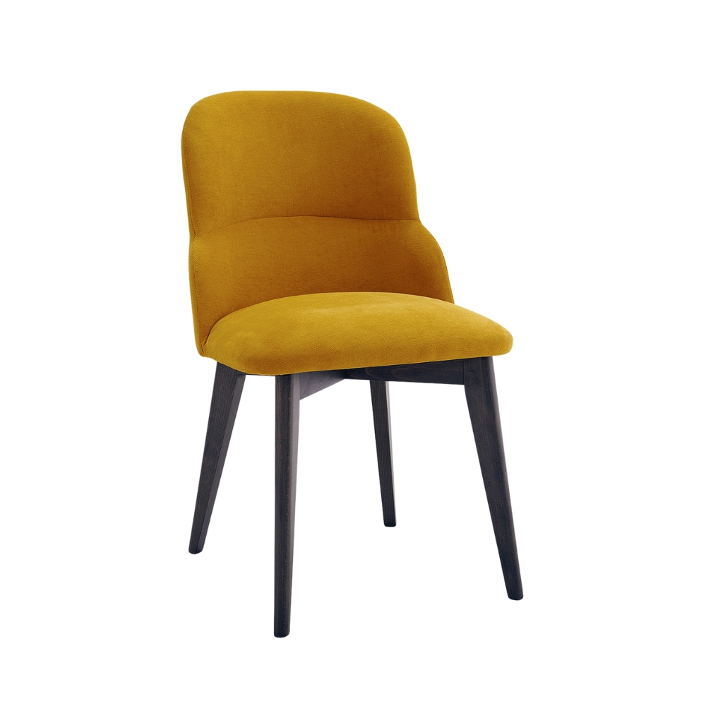Hauteur assise : 49 cm - 4 piètements disponibles : pieds fuseaux ronds ou carrés en métal finition époxy, piétement métal pivotant, ou pieds fuseaux en hêtre massif (6 finitions au choix : teinte wengé/gris foncé/chêne blanchi/naturel verni, ou laque mate blanche/noire) - Large choix de tissus et coloris.