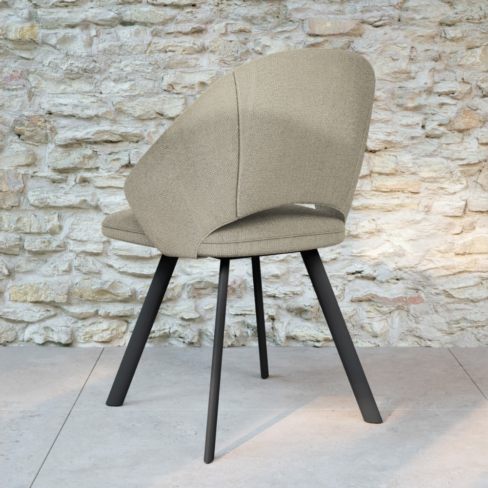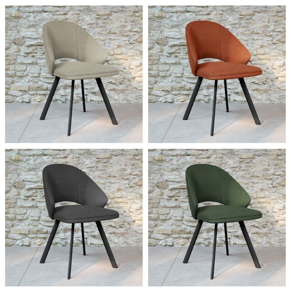 Tissu 93% polyester et 7% nylon - 4 couleurs disponibles : vert sauge, terracotta, crème et anthracite - Piètement fer finition époxy gris anthracite - Bas du dossier ajouré - Plateau pivotant 180° avec retour automatique en option.