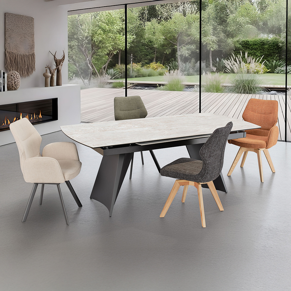 Faites entrer style et confort dans votre intérieur avec la chaise en tissu JULIETTE ! Son assise au soutien équilibré accueille chaque moment avec douceur, tandis que son piètement en frêne apporte une touche chaleureuse et authentique. Ses six teintes, allant du beige sable lumineux au noir ébène élégant, dynamisent instantanément votre déco. Plutôt métal que bois ? JULIETTE se décline aussi avec un piètement en fer gris anthracite. Pour encore plus de confort, laissez-vous tenter par ses options accoudoirs et plateau pivotant 180°. Tendance et personnalisable, JULIETTE est LA chaise qui met du pep’s dans votre intérieur !