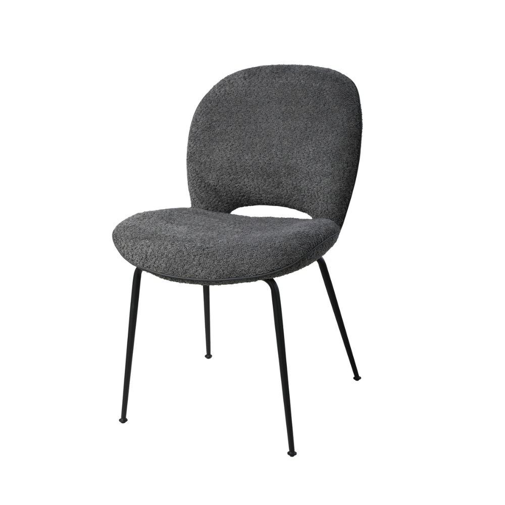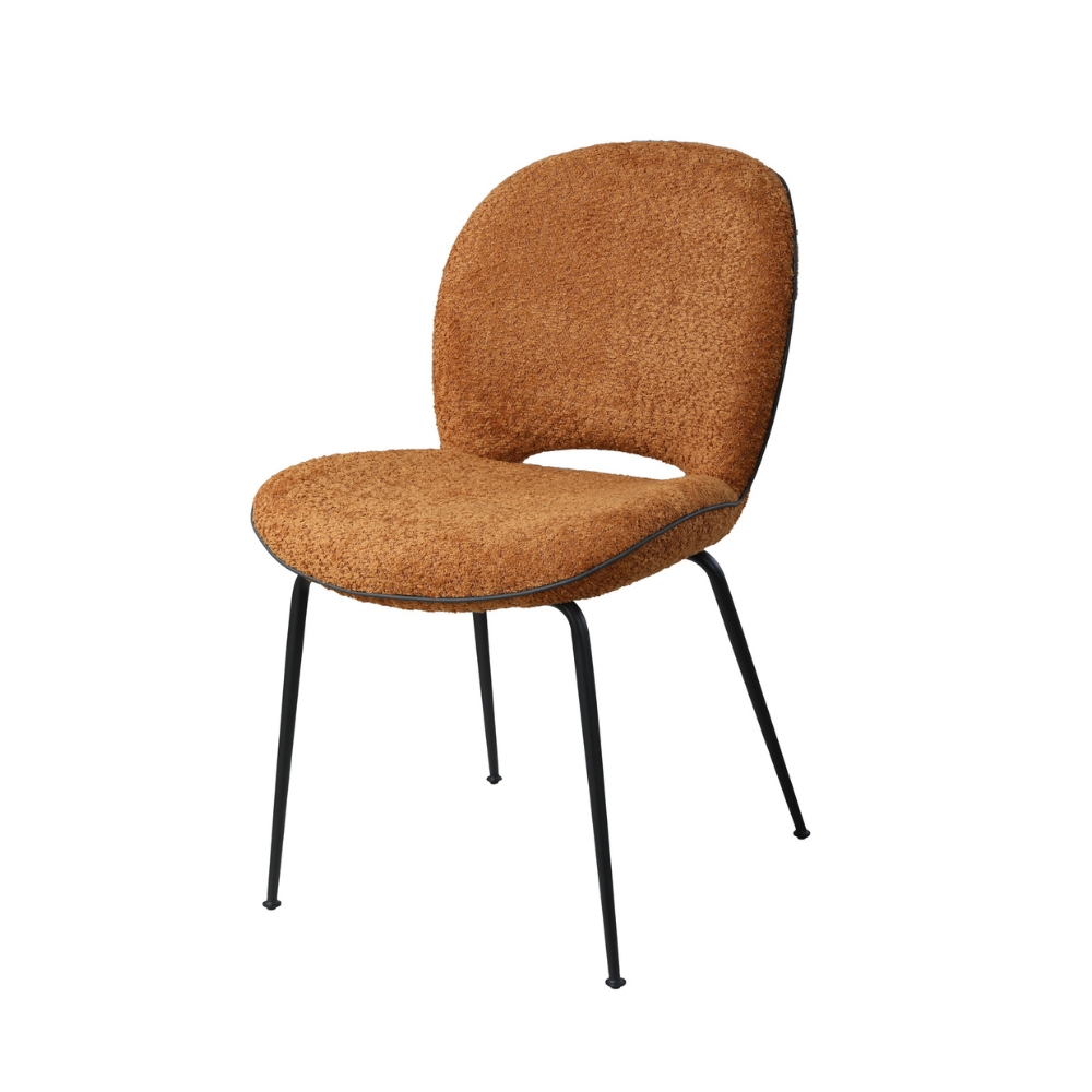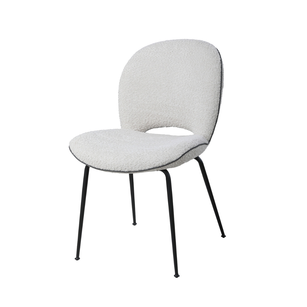 Sa silhouette enveloppante dessine une courbe continue, élégante et rassurante, tandis que son tissu bouclé capte la lumière pour révéler une texture riche et sensorielle. Le dossier ajouré, détail distinctif de ce modèle, allège la structure tout en affirmant son caractère. L’assise, généreusement garnie, offre un accueil souple et un maintien durable, soutenue par un piètement en métal noir qui structure l’ensemble avec modernité. Déclinée en quatre coloris tendance, la chaise RING s’adapte à tous les styles d’intérieur, du plus chaleureux au plus épuré.