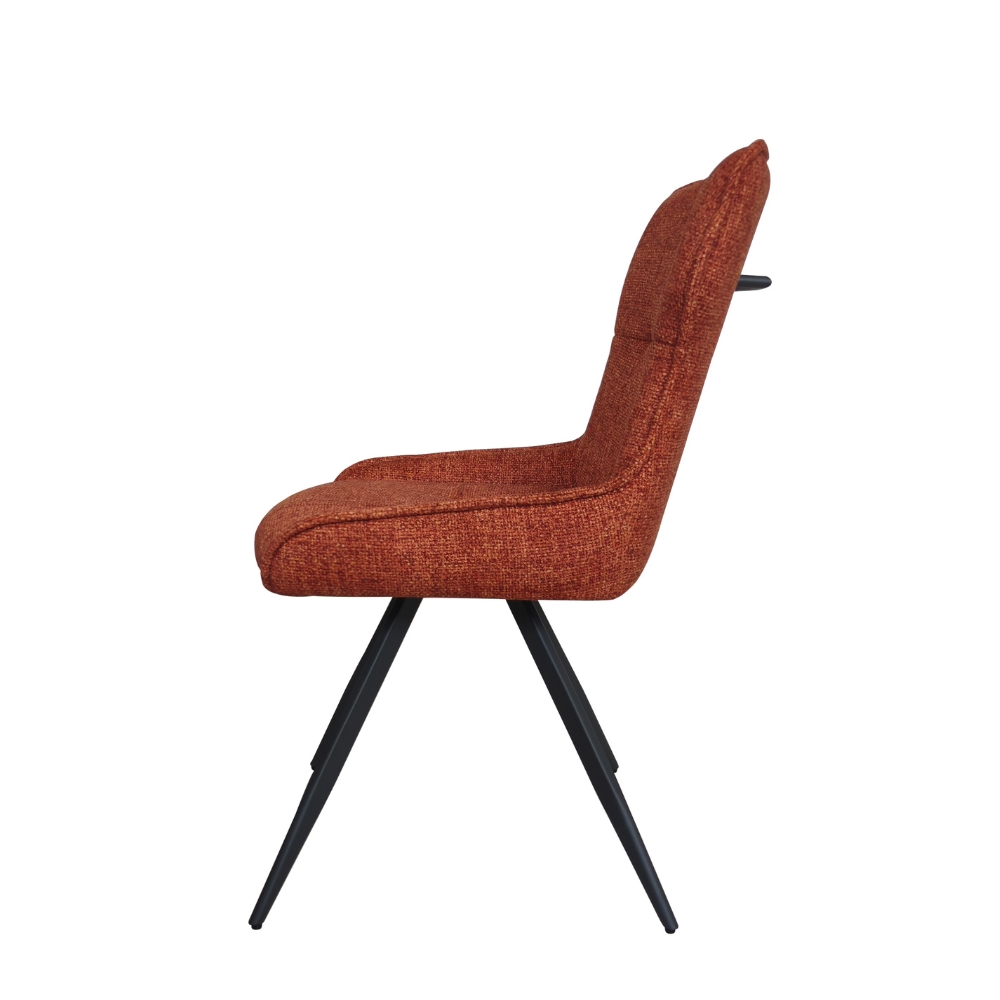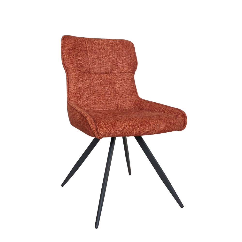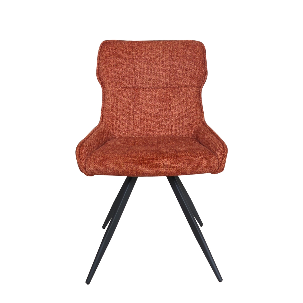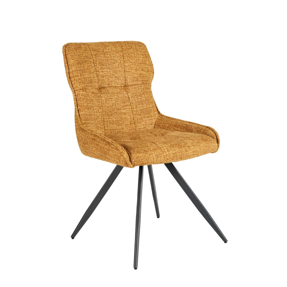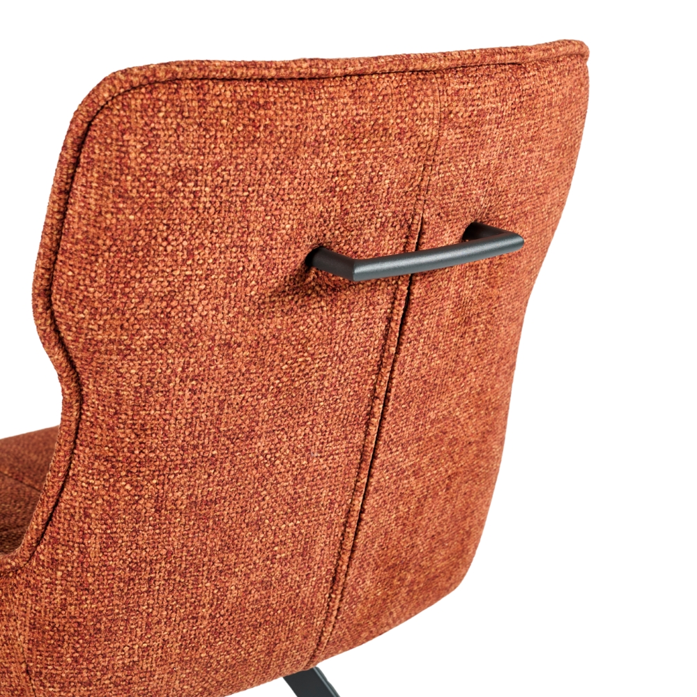 Assise rotative à 180° avec retour automatique - Dossier avec poignée métallique à l'arrière - Piétement : tubes métalliques 4 pieds, thermolaquage noir - Rembourrage : mousse polyester 20 kg/m³ - Poignée intégrée au dossier - Disponible en 6 coloris : safran, terracotta, kaki, marron, gris clair et gris foncé.