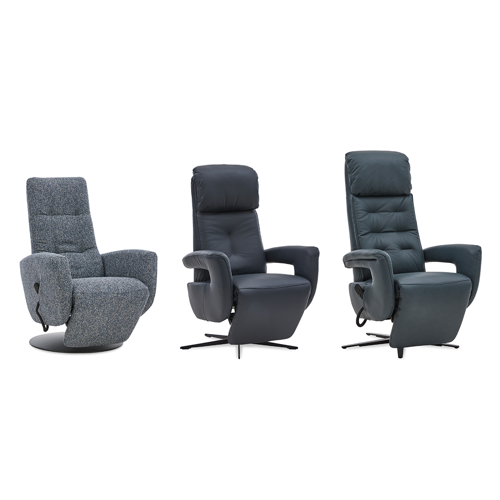 Fauteuil de relaxation pivotant - Structure en tubulure métallique et matériaux en bois - Assise : ressorts zigzag en acier, garnissage mousse polyuréthane moulée à froid Superflex - 3 fermetés d’assise au choix - 3 tailles ergonomiques au choix (S, M, L) - 3 variantes d’accoudoirs et 3 variantes de dossiers au choix - Appui-tête inclinable - Repose-pieds intégré - Fonctionnement par pression corporelle - Position Zéro Gravité - Piétement disque ou étoile, plusieurs finitions disponibles - Existe en cuir et en tissu - Réglages motorisés en supplément, contrôle par télécommande filaire - Options : coussin d’appui-têtes (4 modèles), maxi dossier et maxi repose-pieds, aide au relevage, batterie externe interchangeable.
