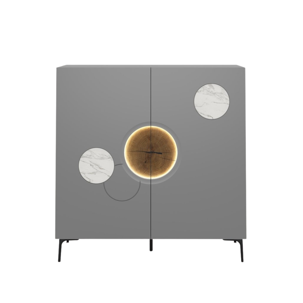 Donnez du caractère à votre intérieur avec le meuble de rangement AQUA, où le design graphique rencontre l'élégance naturelle.