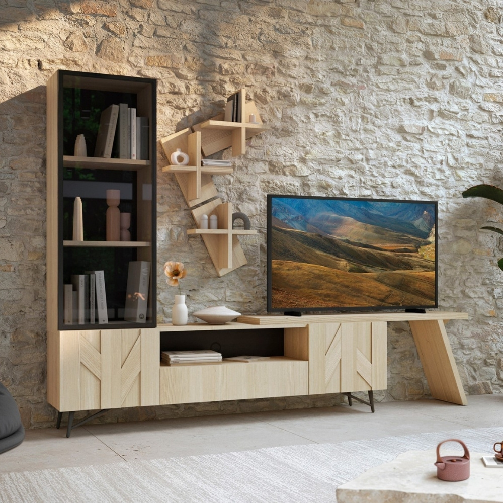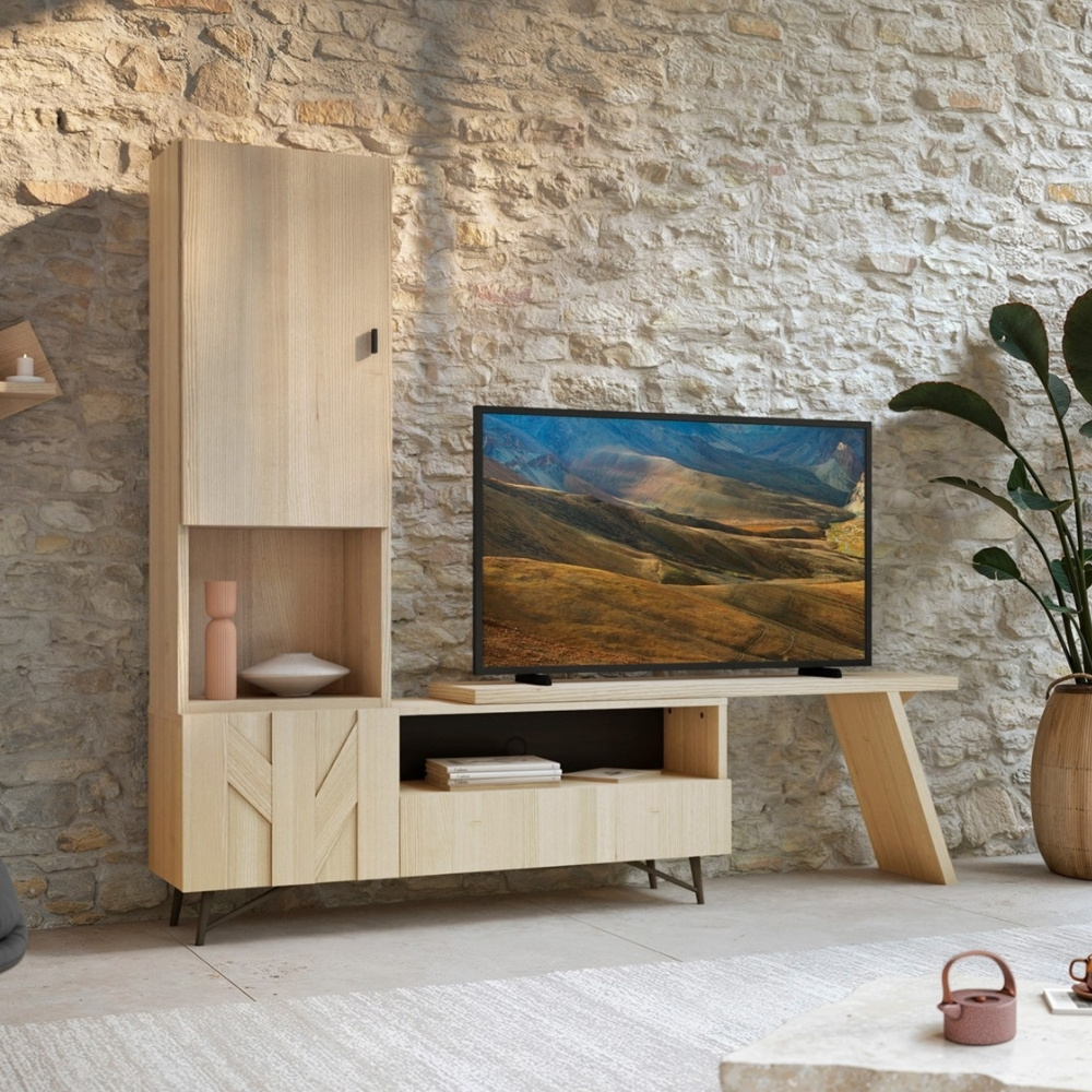 Fabriqué en France, le meuble TV CANOPEE allie l’élégance naturelle du chêne blond à une conception fonctionnelle et contemporaine. Son design graphique avec motifs chevrons, pieds métalliques réglables, et ouverture "pousse-lâche", séduit d’emblée, tout en facilitant l’usage au quotidien. Ses panneaux épais garantissent une solidité parfaite, tandis que le fond technique en retrait avec passe-câbles simplifie votre installation multimédia. Disponible en 150 ou 200 cm, il s’adapte à tous les salons… et toutes vos envies ! Modulable, il peut être complété par une colonne (porte bois ou vitrine fumée), un surmeuble mobile, et trois étagères murales graphiques. Une composition personnalisable, pensée pour conjuguer style, ingéniosité et esprit naturel. À découvrir également : la table de repas extensible, le buffet et le vaisselier CANOPEE pour un intérieur harmonieux, chaleureux et conçu pour durer.