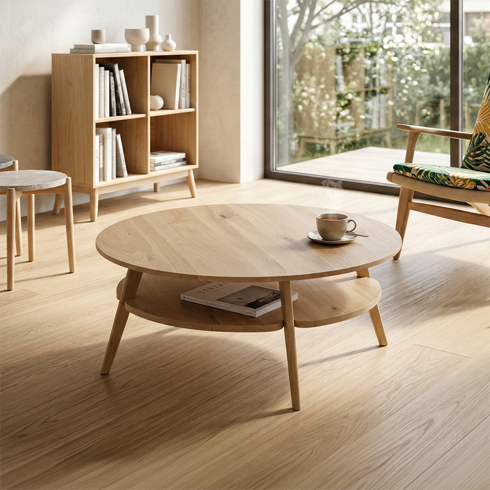 Son design minimaliste et ses lignes nettes apportent clarté et légèreté au salon. Fabriquée en chêne massif, elle allie résistance et charme naturel. Son dessus spacieux et son plateau inférieur offrent un support pratique pour vos magazines, télécommandes ou objets du quotidien.