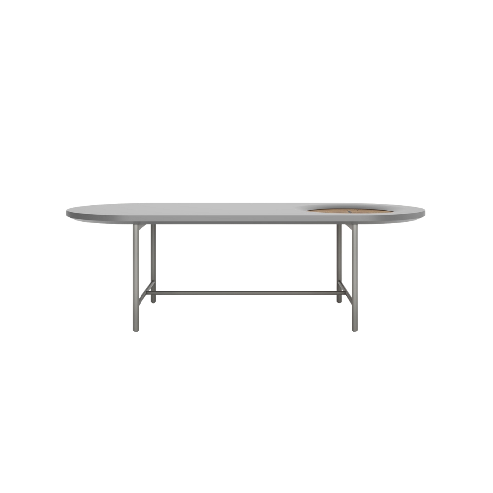 Sa forme allongée de 120 cm est ponctuée par un insert circulaire emblématique de la collection, créant un point focal visuel immédiat. Associez-la à son guéridon coordonné : la superposition de hauteurs et de matières apporte une vraie dynamique à votre espace détente. Le petit plus ? La possibilité de personnaliser le plateau du guéridon en bois, laqué ou en céramique pour un contraste de textures sur-mesure.